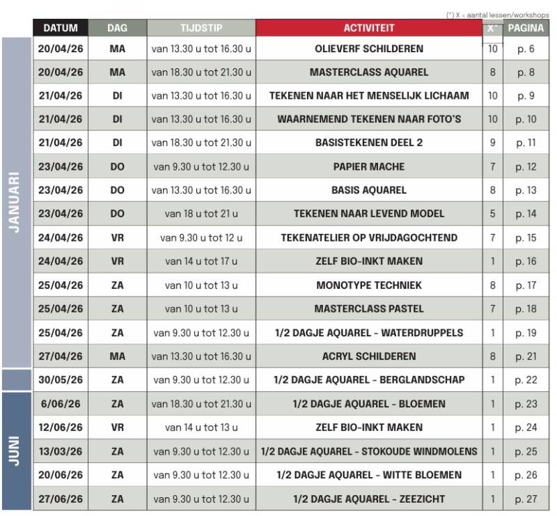 De volledige brochure voor inschrijving kan je downloaden onder de knop WORKSHOPS EN CURSUSSEN
